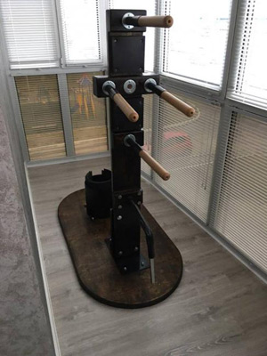 Так называемая модель в стальном «стакане». Очень компактное и удобное для маленьких помещений решение. Платформа подбита резиной и не портит пол. Легко разбирается и собирается. Легко помещается в обычный автомобиль для перевозки. Эта модель стоит от 33000 р.